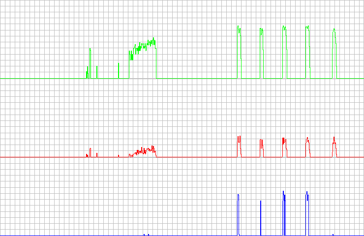 The third graph (blue) is the most interesting of the three graphs. It shows how many errors in the extracted WAV file are not reported in a C2 error flag. On drives with perfect C2 reporting, this graph should be a flat zero line. But as most drives do not have perfect C2, it will show errors to an extend. Even the Teac56S (shown below) still have some artifacts on blocks that are unreadable to it. More of that later on showing some examples of drives.